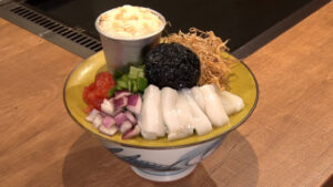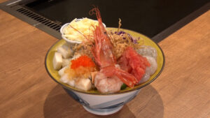具材は大きな赤エビ・イカ・明太子・とびこと、海鮮がたっぷり!