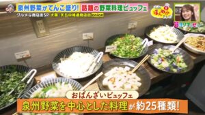 煮物やサラダなど、泉州野菜を中心とした手作りの日替わり料理が約25種類!