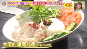 おすすめは、とろけるほど柔らかく蒸しあげた鶏肉を鶏スープで炊いたご飯といただく、大阪的海南鶏飯(チキンライス)