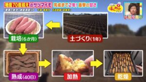 収穫後、土の中と似た環境で熟成することで、デンプンがとうに変化して甘みが増します。