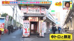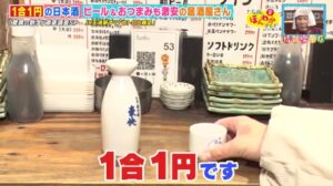 店前にある看板には、でかでかと「日本酒1合 あつかん・冷酒 1円」と書かれています。