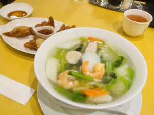 鶏ガラスープにに海鮮だしのあんがかかっています。