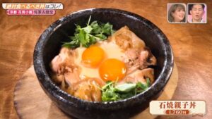 石焼き鍋でまぜまぜすることで、石焼きの余熱で卵が半熟に。