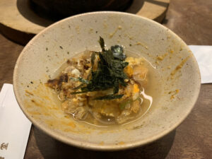 そして、別皿によそって、熱々の特製スープをかけて、だし茶漬け風に。