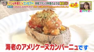 フレンチの定番アメリケーヌソースで炒めた海老と、特製のトマトソースと季節の野菜を加え、パンに乗せた逸品です。