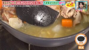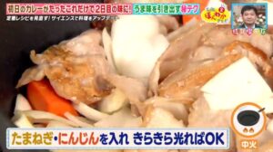 この工程で作ると、野菜や肉の旨味がルゥーに存分に溶け出すので、簡単に2日目の味が出せます。