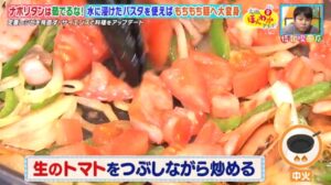 ※水分が飛んだ後、パスタに焼き色を付けるようにして炒めることで味を引き締め、パスタの香ばしさを引き立てることができる!