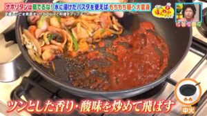 ナポリタンがケチャップ味のパスタになる原因は、炒め足りないからです。