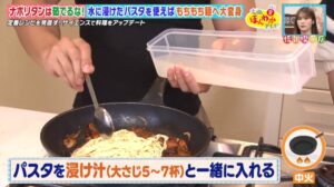 ※調味液で味付けした具材とパスタを一緒に加えて煮込むことで、パスタの中まで具材のうま味や風味をしっかりしみこませることができる!