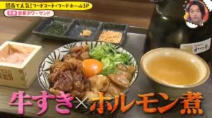秘伝のタレで香ばしく焼き上げた牛ホルモンとハラミがのったお肉もりもり丼です。