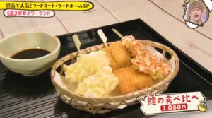 京都タワーサンド店限定のあられ揚げを食べ比べでいただけます。