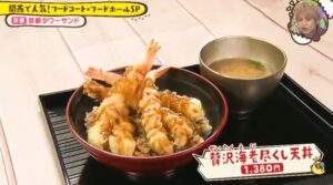また、プリプリの海老天が5尾ものった利益度外視の、贅沢海老尽くし天丼:1380円