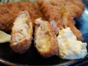 粗めのパン粉をつけ、大豆由来の油であっさりと仕上げています。