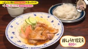 生姜感が強めの甘辛い豚しょうが焼定食:820円も人気です。
