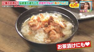 焼いたあと身をほぐして、お茶漬けにすると絶品です。