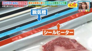 - 専用袋に食材を入れ、袋の端を機械にセット。