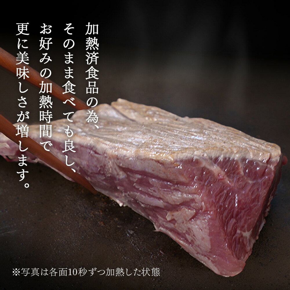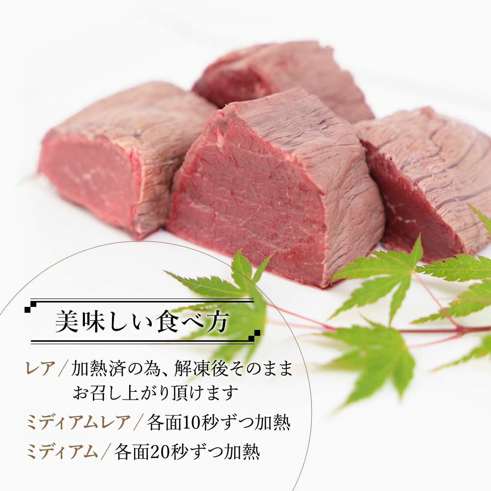加熱処理を行っている為、そのままでもお召し上がり頂けますが、レアに近い食感が苦手な方は、解凍して袋から取り出し、フライパンで6面各10秒ぐらい焼くとミディアムレア、各面20秒程度焼えばミディアム程の食感になります。