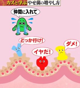 あとから、やせ菌を増やそうと、善玉菌を豊富に含む発酵食品などを、短期間に大量に食べたとしても、腸内に元からいる菌がそれを排除しようとするため、効果は一時的です。