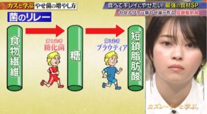 短鎖脂肪酸は、やせ菌の代謝物と言われています。