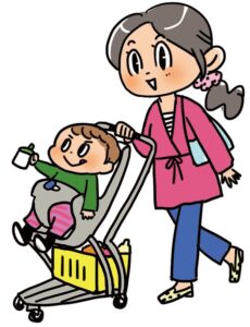 子どもが手押し車を押すのが好きなら、お母さんと一緒にショッピングカートを押してもらいましょう。