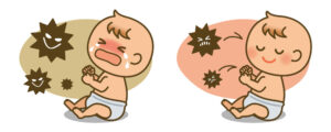 お母さんのお腹の中にいた時に、赤ちゃんはお母さんから免疫をもらいます。