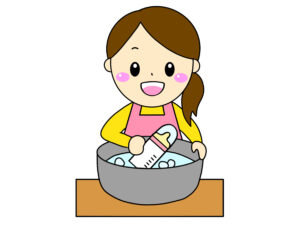 哺乳瓶など、赤ちゃんが口に入れたものはよく洗って、しっかり乾かして、雑菌が繁殖しないように気を付けてください。