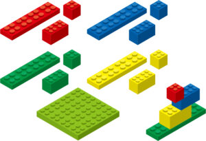 レゴブロックには様々な形、色、人間や動物のブロックがあり、ブロックの組み合わせは無限大。