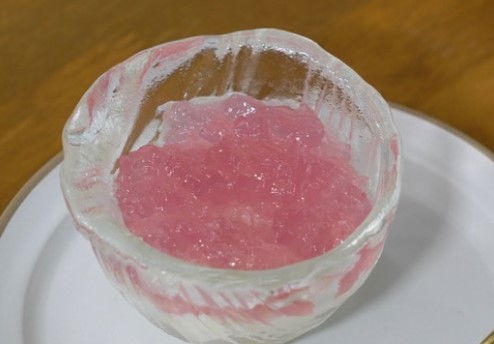 - ゼリーが固まったら泡立て器で混ぜ、ジュレ状にする。