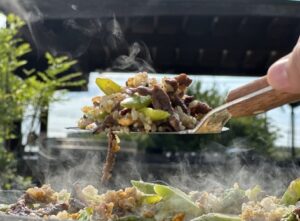- 最後にしょうゆを回しかけ、軽く炒めます。