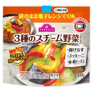 冷凍食品で揚げなす・ズッキーニ・赤黄ピーマンが入っています。