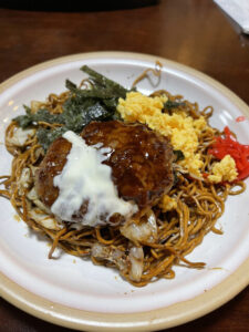ヤミツキ食感の飛騨牛ハンバーグオンザソース焼きそば