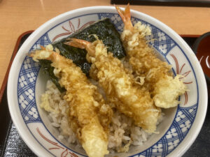 海老天がわやらかくて、元々つゆだくが好きなんで、追加でかけた。
