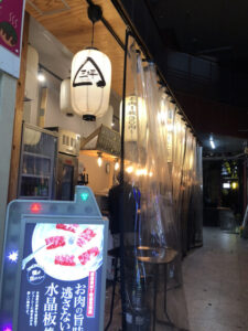 新京橋商店街の路地に入るとある大人気の立ち食い焼き肉店。