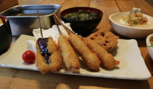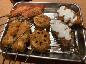 串カツがメインのお店で、串カツだけでも50種類くらいあります。