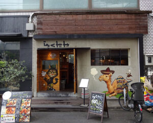 壁に描かれたらくだのイラストが目印の「らくだや」