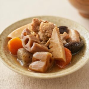 鶏肉やごぼう、たけのこなどを、コクのある醤油を使い、深みのある味に。