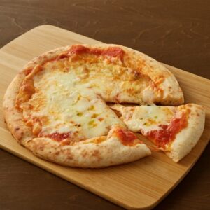 ナポリピッツァの代表的なメニューである「マルゲリータ」をお手本につくりました。