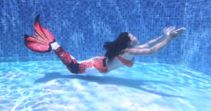 人魚のように優雅に泳ぐポイントは、腰を大きく動かしてヒレに躍動感をつけると美しいです。