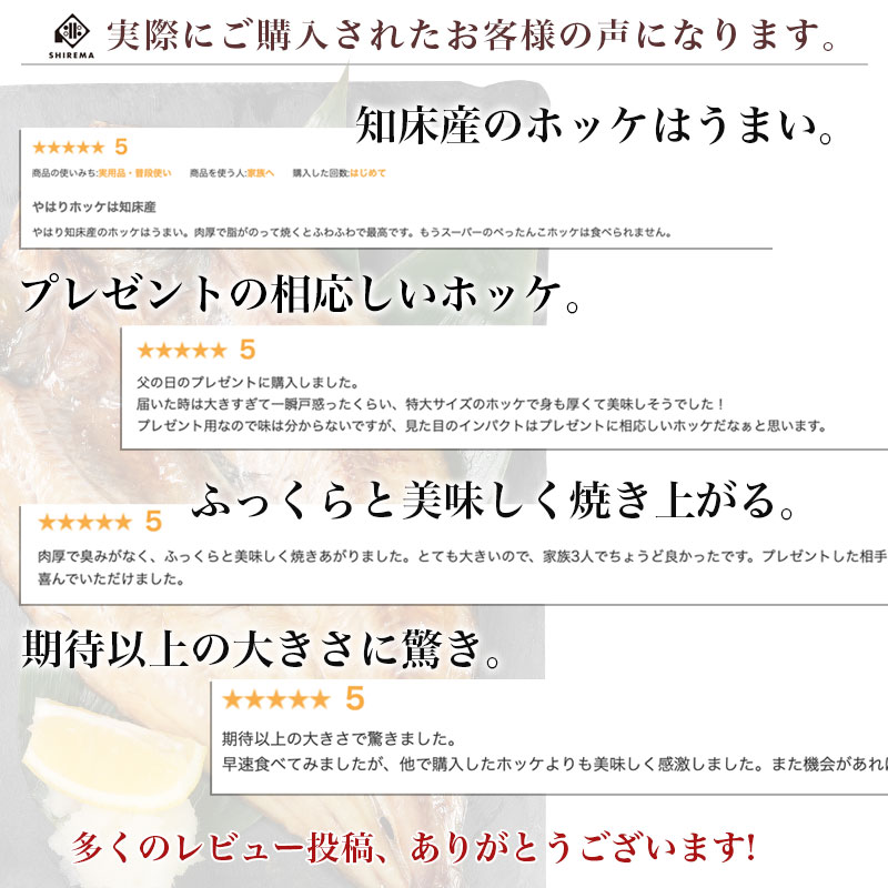 海道 知床・羅臼産 ホッケ一夜干し 5枚入 1枚あたり400g~450gの口コミ