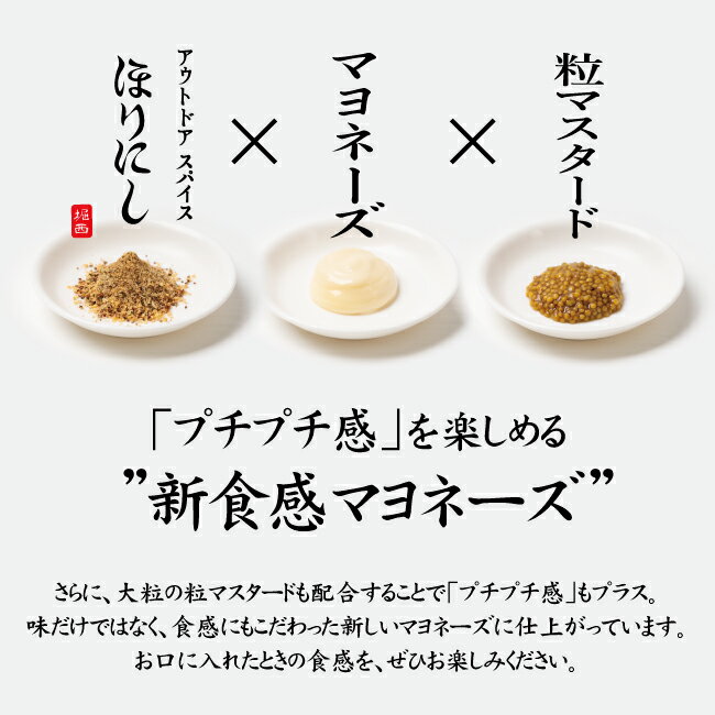 アウトドアスパイスで有名な「ほりにし」とマヨネーズが合わさった進化系調味料です。