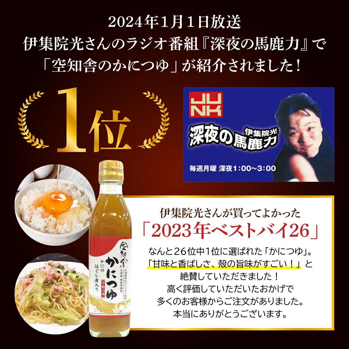 カニのフレークを入れ、隠し味に昆布と海老のエキスを配合した、カニの風味豊かな旨みの強いつゆの素に仕上げました!
