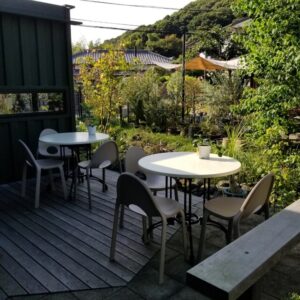小川が流れていて、お魚を眺めながらゆっくりできます。