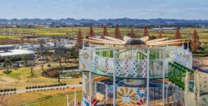 目玉は、高さ13m、直径15mある4階建て大型複合遊具の「ひまわりタワー」