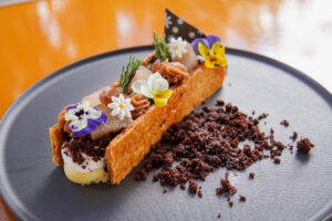 もともと花博の会場だったことから、食用の花と洋梨や栗をトッピング。