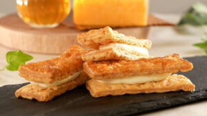 ハチミツとチェダーチーズをパイ生地に練り込んでいます。