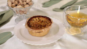 生地のピスタチオのクリームが口の中に広がり、噛んでいくうちに上のナッツが広がります。