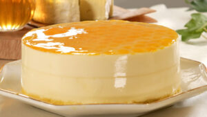 ムースは、はちみつとカマンベールの2層になっていて、表面にははちみつジュレを乗せています。