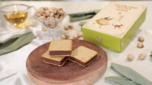 ピスタチオペーストをふんだんに使用したクッキー生地で、肉厚のミルクチョコレートをサンド。