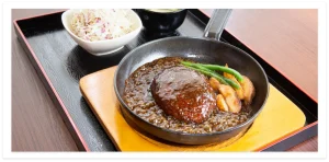そんな想いから子供からお年寄りまで、いつでも誰もが、そして気軽に食べられるおいしい物をと考え、お箸で食べられるハンバーグを作り上げました。