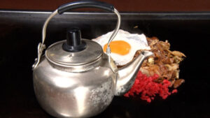 やかんに日本酒を入れ、鉄板で温めながら吞むのがぽん繁では定番です。